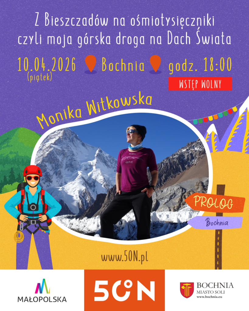 Podczas tegorocznej edycji Małopolskiego Festiwalu Podróżniczego 50°N gościem specjalnym będzie Monika Witkowska – jedna z najbardziej wszechstronnych podróżniczek w Polsce. Uczestnicy będą mieli wyjątkową okazję spotkać się z nią dwukrotnie – zarówno podczas głównej części Festiwalu w Niepołomicach (11 kwietnia), jak i w ramach PROLOGU w Bochni (10 kwietnia).