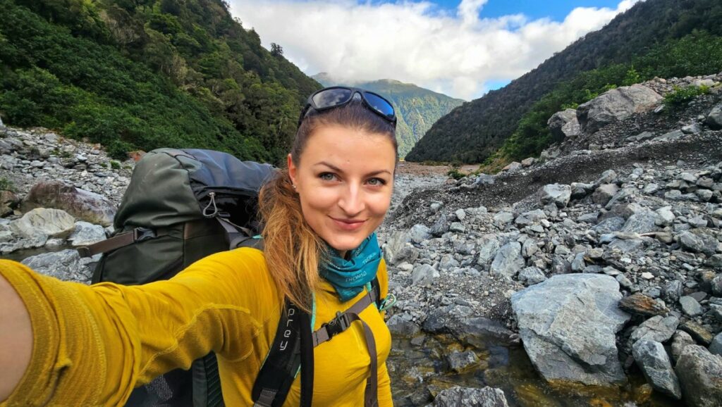 Zuzanna Puchalska – podróżniczka i planistka z wykształcenia, z głową pełną map, słów i nieoczywistych tras. Zaczynała od autostopowych eskapad przez Europę i Azję, by z czasem realizować coraz ambitniejsze projekty, głęboko zakorzenione w lokalnych społecznościach. Z Syberii trafiła w Andy i do Amazonii. Rozbijała namiot na śniegach norweskich fiordów, na pustyni Gobi, na Wielkim Murze Chińskim i wśród olbrzymich sekwoi w Kordylierach. W 2024 roku wyruszyła w samotną podróż dookoła świata, podczas której samodzielnie przeszła Nową Zelandię słynnym szlakiem Te Araroa. Jej opowieści to historie zapisane na tysiącach stron notatników – refleksje o tym, co dzieje się z człowiekiem, gdy znika zasięg, a pozostaje zanurzenie w obcej kulturze, bliskość natury i uważna obserwacja świata.